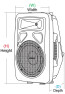 600 Watts forstærker, 10-tommers højeffektiv basenhed, kompressionsdriver, bred sprednings horn-design, ABS stødsikkert plastkabinet, 1/4" & XLR mikrofonindgang med separat gain-kontrol, linje RCA & XLR indgange, 1/4" & XLR outputstik, bas- og diskant tonekontroller, master volume output-kontrol, kan monteres på stativ, rød LED-indikator for clip alarm