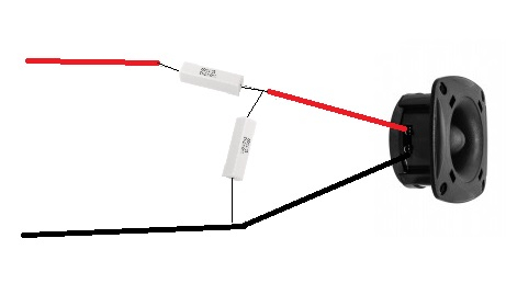 Grundet at denne diskant er meget effektiv skal den dæmpes ned med en Lpad kreds som er 2 modstande, hvor den ene skal kobles i serie med plus til diskanten og den anden modstand parallelt over diskanten.