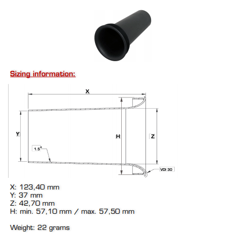 | Teknisk info & Data | Flared 42x125 Basrefleksrør Jantzen Flared afgang for at mindske turbulens ved mundingen, og dermed reducere portstøj. Se beskrivelsen for dimensioner |